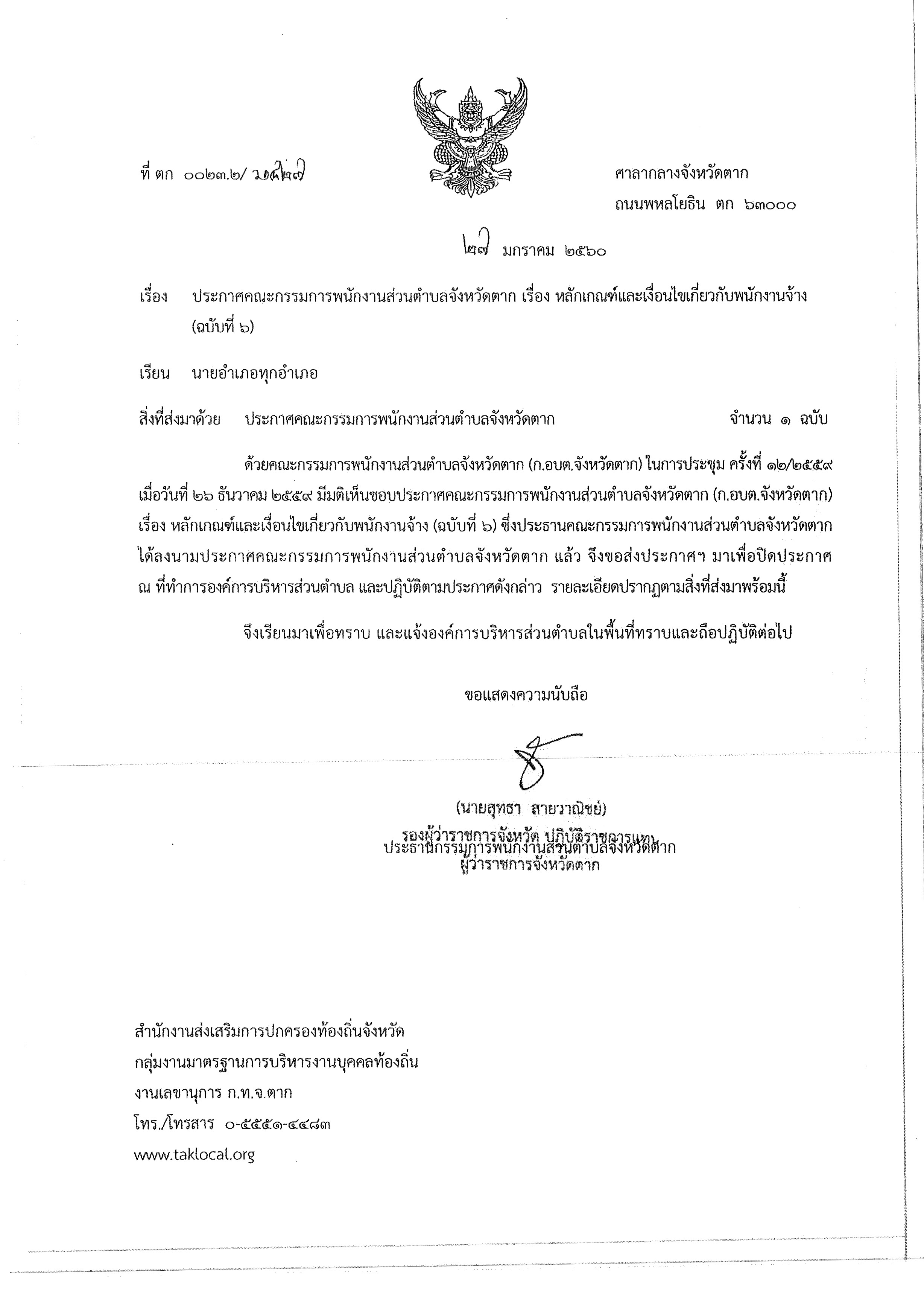 ประกาศคณะกรรมการพนักงานส่วนตำบลจังหวัตตาก